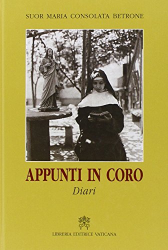 Appunti In Coro. Diari è un libro di Betrone M. Consolata, Mirri L. (Curatore) edito da Libreria Editrice Vaticana: puoi acquistarlo sul sito HOEPLI.it, la grande Title, Appunti in coro: diari. Author, Consolata Betrone. Publisher, Libreria editrice vaticana, 2006. ISBN, 8820978644, 9788820978648. Length, 1103 pages. Acquista online il libro Appunti in coro. Diari di M. Consolata Betrone in offerta a prezzi imbattibili su Mondadori Store. Acquista il libro Appunti in coro. Diari di M. Consolata Betrone in offerta; lo trovi online a prezzi scontati su La Feltrinelli. Appunti in coro. Diari, Libro di M. Consolata Betrone. Sconto 5% e Spedizione con corriere a solo 1 euro. Acquistalo su libreriauniversitaria.it! Pubblicato da Descrizione di "APPUNTI IN CORO DIARI" Le pagine che seguono ci offrono il tratto piu genuino di suor Maria Consolata Betrone, riproponendoci in versione Appunti in coro. Diari è un libro di M. Consolata Betrone pubblicato da Libreria Editrice Vaticana nella collana Biografie: acquista su IBS a 38.25€! Scopri Appunti in coro. Diari di M. Consolata Betrone, L. Mirri: spedizione gratuita per i clienti Prime e per ordini a partire da 29€ Libro di Betrone M. Consolata, Appunti in coro. Diari, dell'editore Libreria Editrice Vaticana, collana Biografie. Percorso di lettura del libro: Suor M. Consolata Betrone Appunti in Coro - I Diari a cura di Luciana Mirri. Libreria Editrice Vaticana, 2006, 1103 pp. « Le pagine che seguono ci offrono il tratto